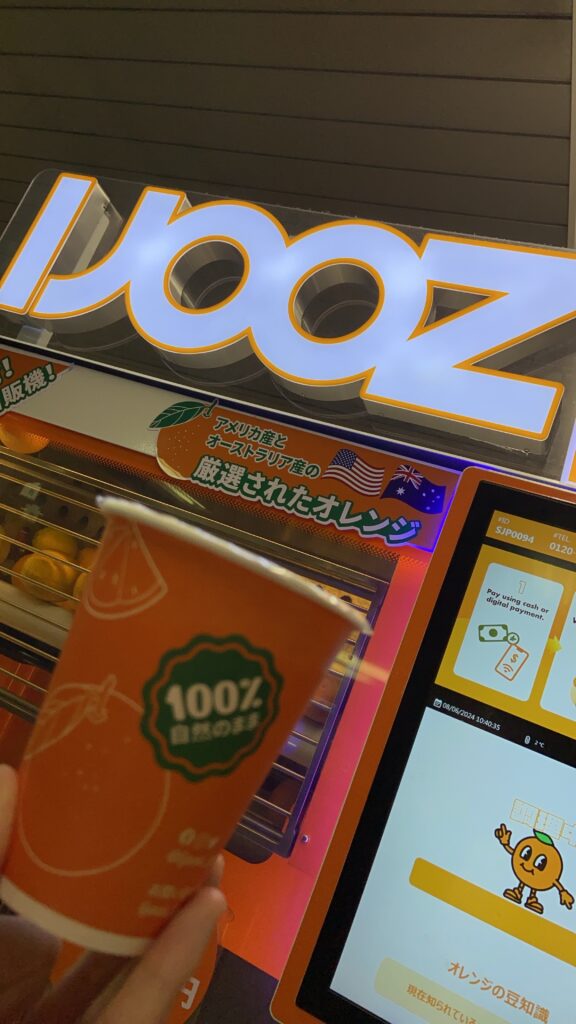 間食にほうじちゃソフトクリームと梨のジュースをいただきましたが、蛇口からジュースは斬新でした。