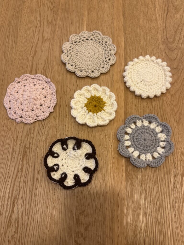 話は変わりますが、2ヶ月ほど前に編み物キットを購入しまして、暇な時に少しずつ進めていたコースター作りがついに完成しました!