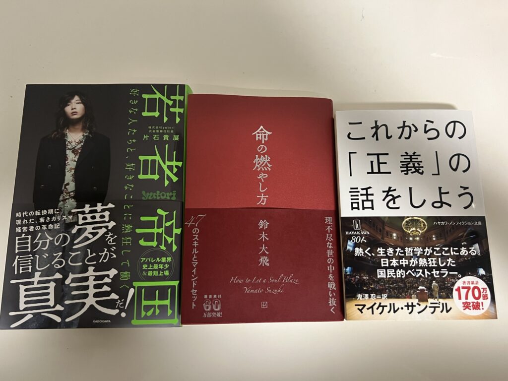 『これからの「正義」の話をしよう』は読み終え、現在は『命の燃やし方』を読んでいます!