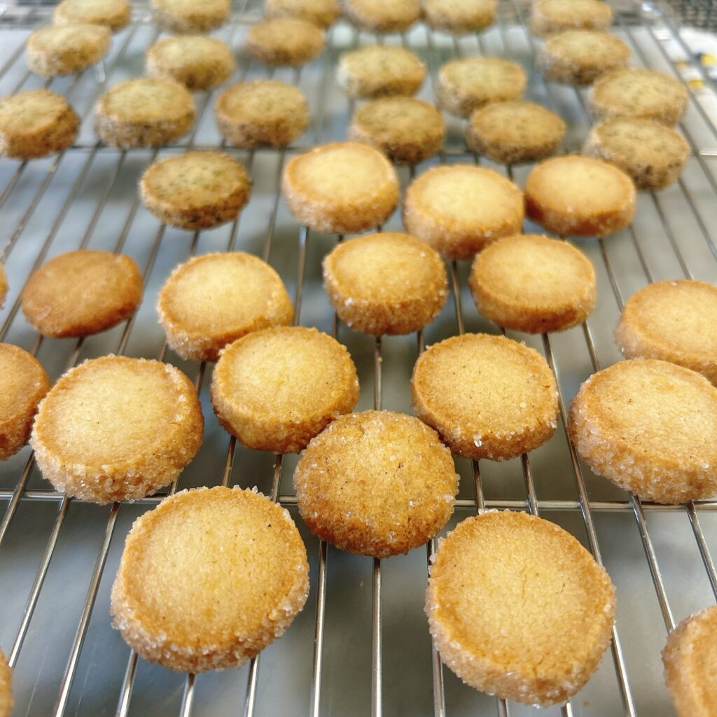 作るのは簡単そうに見えて、気をつける点が多く、基本は冷たい状態で作らないとバターが溶けてしまってうまくできないという事で、温度管理も大変なんだなと感じました。手が温かい人は溶けやすいから、水で手を冷やしてから作業する。と聞いて、そこまで?!と思いましたが、それくらい温度が大切なんだとわかりました。