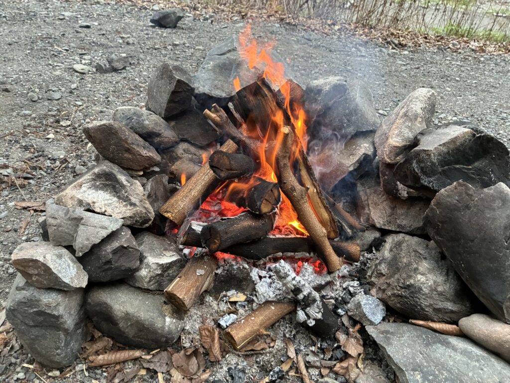 焚き火をしながら考え事をしたり本を読んだり、ご飯食べたりとのんびり出来ました。